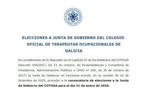 Desde COTOGA, queremos comunicar que se convocan novas eleccións á Xunta de Goberno, que se celebrarán o día 31 de xaneiro de 2026 , na sede do