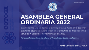 El sábado, 12 de marzo, tendrá lugar la Asamblea General Ordinaria para personas colegiadas del Colegio Oficial de Terapeutas Ocupacionales de Galicia (COTOGA), del año